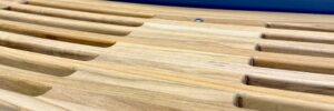Fresh varnish brings a warm glow to indoor storage boats …