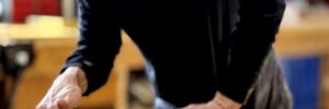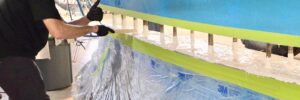 Lights, sanding, action…a Fortier 30 is getting a fresh finish …