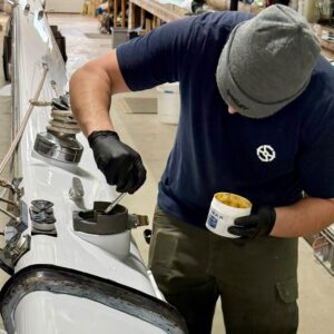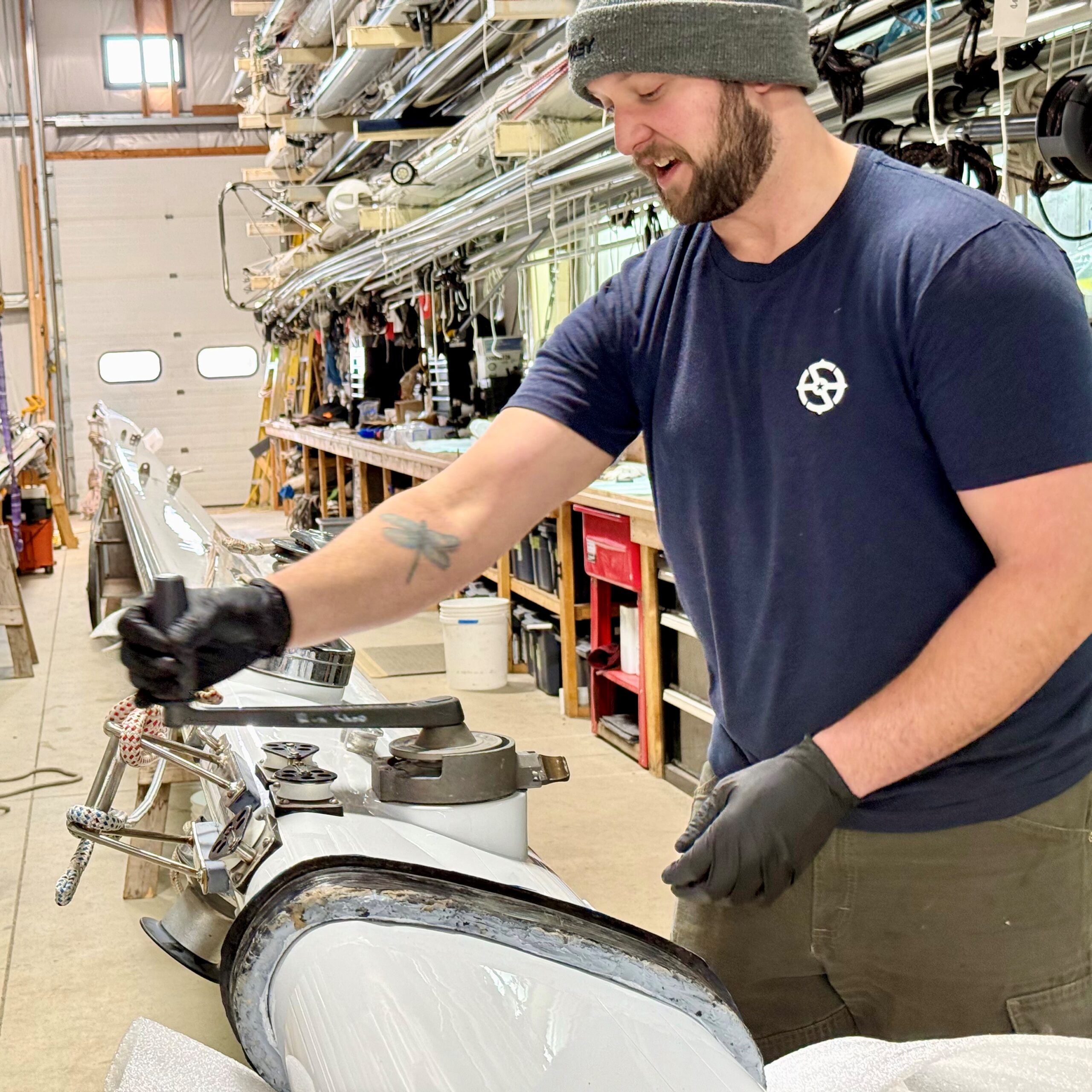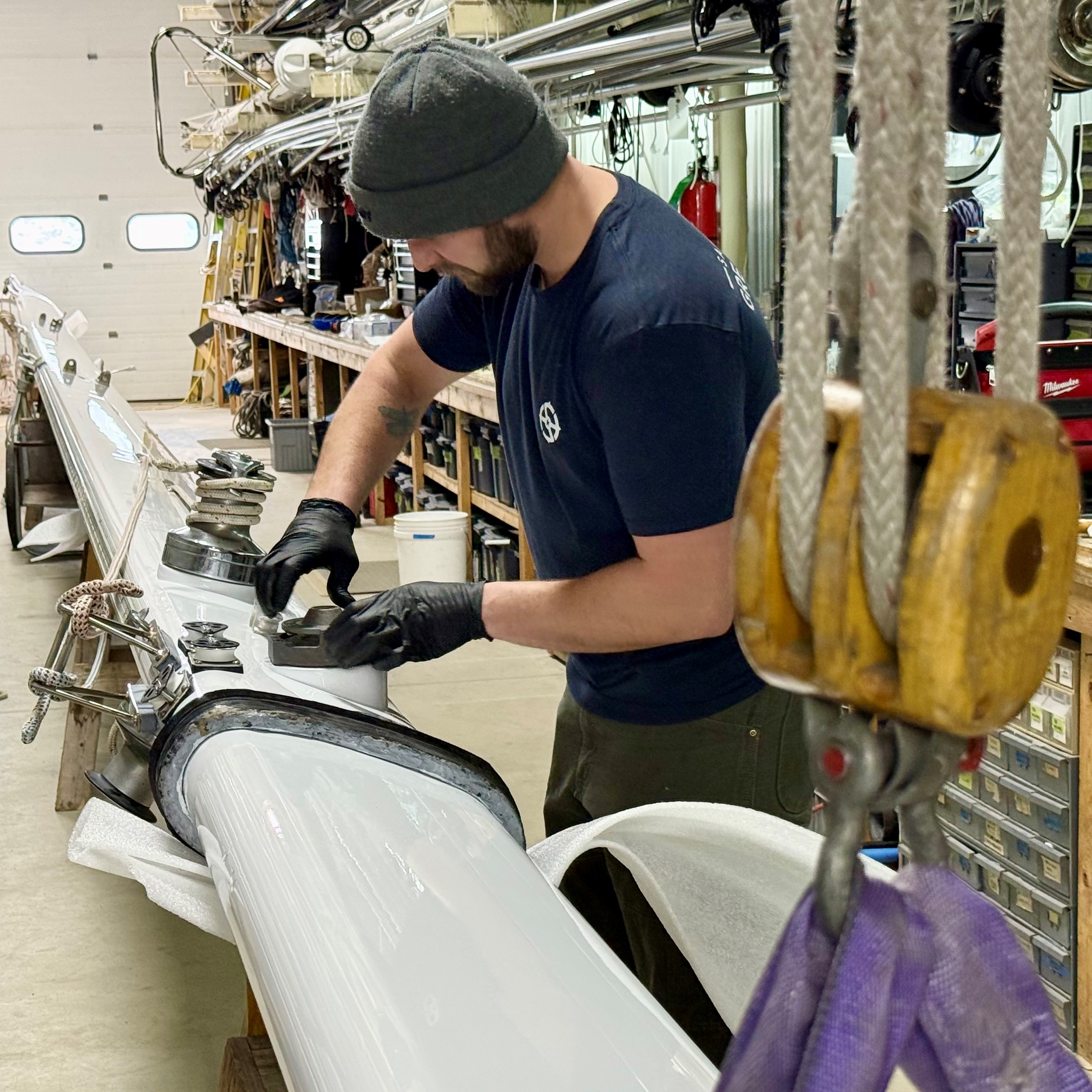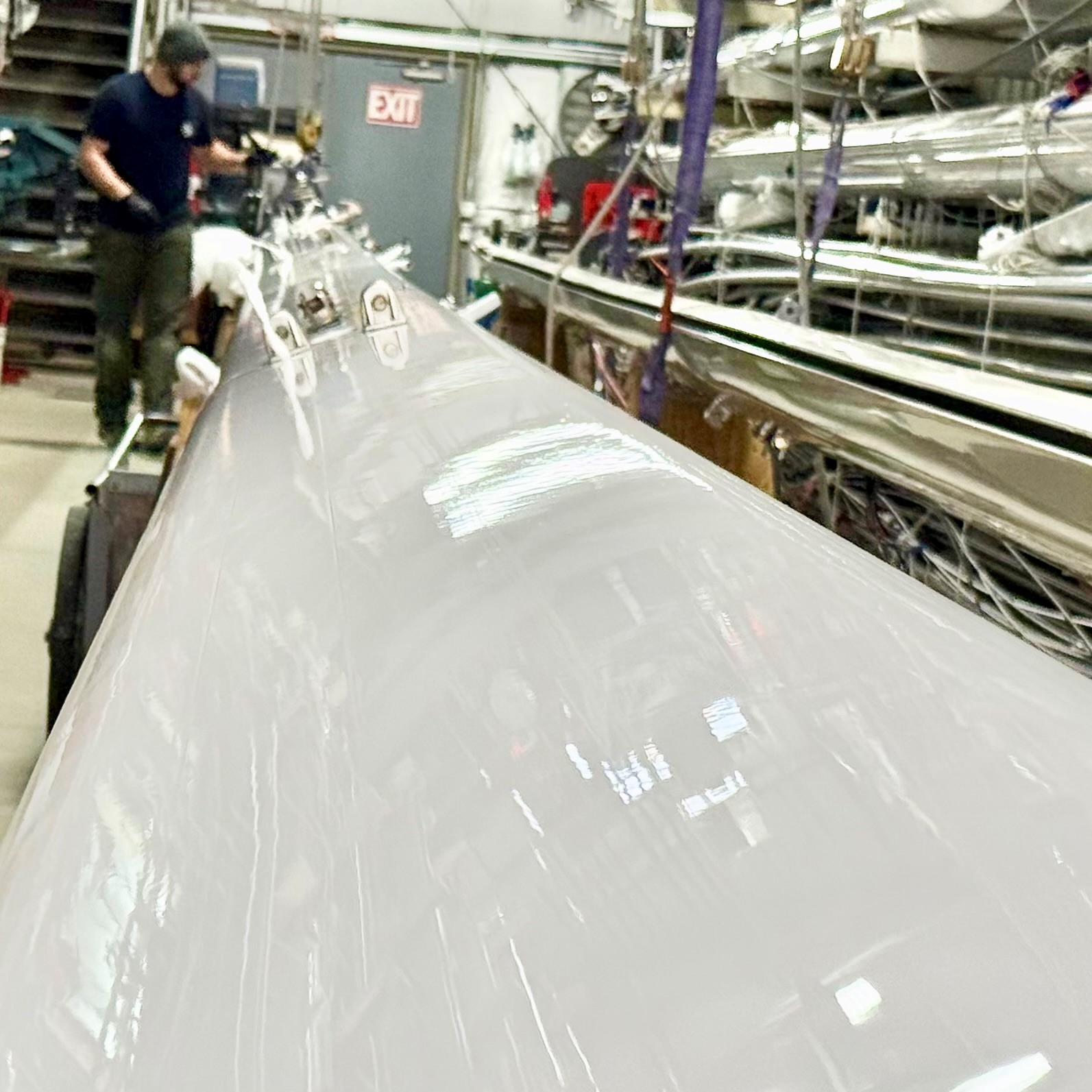 Our riggers are done re-dressing a Little Harbor 53 spar. They recently stripped the mast so our finishing team could work their magic with paint. Teamwork makes the dream work.